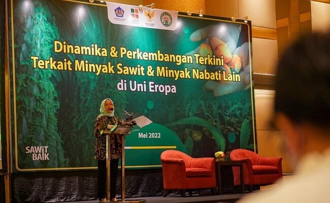 “Kelapa sawit ini sangat penting untuk negara kita. Buktinya begitu harga kelapa sawit tinggi dan ada isu minyak goreng, reaksi masyarakat sedemikian besarnya. Mulai sekarang kita harus mulai membangun dari bawah. Membangun suasana yang stabil dari hulu sampai hilir,” ungkap Deputi Bidang Koordinasi Pangan dan Agribisnis Musdhalifah Machmud, dalam sambutannya pada Seminar bertajuk “Dinamika dan Perkembangan Terkini Terkait Minyak Sawit dan Minyak Nabati Lain di Uni Eropa”, Rabu (11/05).