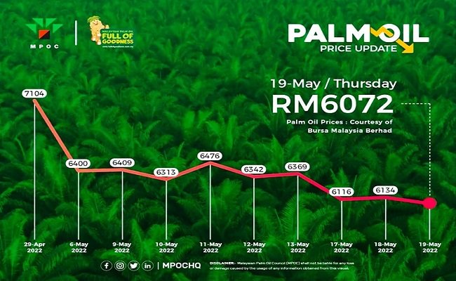 Sementara itu respon pasar terhadap pembukaan kran ekspor tercatat masih normal. Harga perdagangan produk minyak sawit mentah (CPO) masih menunjukkan pergerakan yang normal. Merujuk data Malaysian Palm Oil Council (MPOC), harga CPO masih diperdagangkan pada level RM 6.072 perton, dengan kurs US$ 0,23/RM, harga sekitar US$ 1.380/Ton.