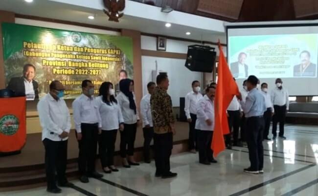 Ramli dan Purnomo dilantik oleh Ketua Umum GAPKI, Joko Supriyono, di Gedung Mahligai Komplek Perumahan Dinas Gubernur Kepulauan Bangka Belitung, Kamis (30/6/2022).